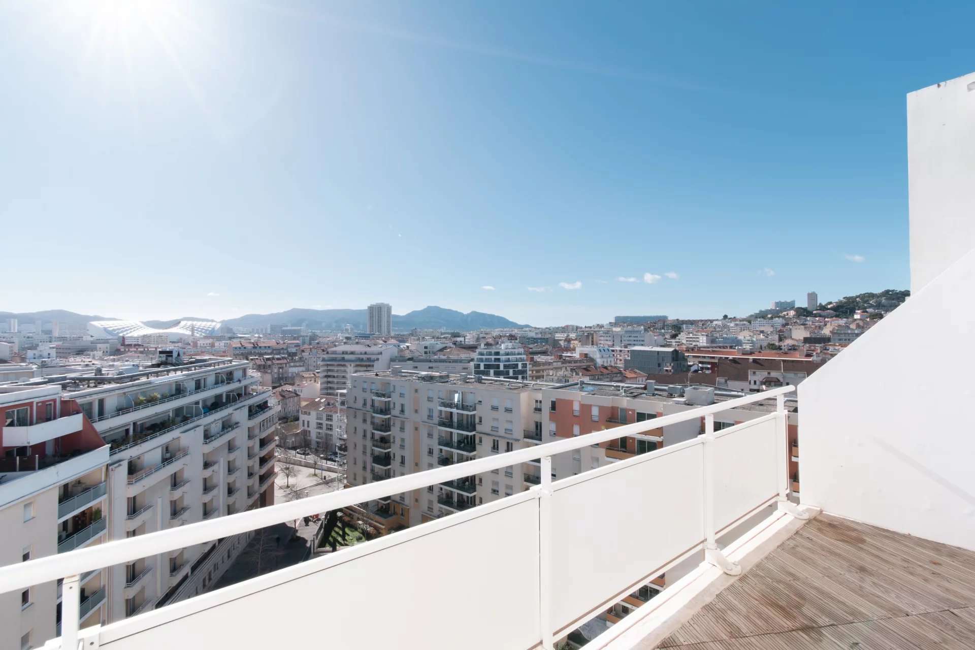 Located on the top floor of a recent, high-end, secure and impeccably maintained residence, this approx. 100 sqm duplex is set in the highly sought-after 8th district of Marseille, in immediate proximity to Périer metro station, Rouet side. Spread over the 9th and 10th floors of the building, the apartment enjoys fully open views with no overlooking neighbours, overlooking the city, as well as a south-facing exposure that provides exceptional natural light throughout the day.